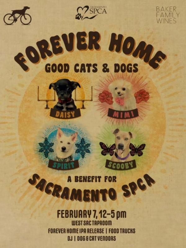 We are thrilled to announce that for the fourth year, we are collaborating with Bike Dog Brewing on a special “Forever Home” IPA with Sacramento SPCA alumni on the cans!