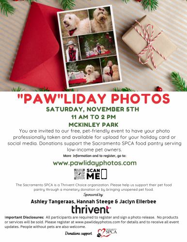 The Sacramento SPCA is a Thrivent Choice organization. Please help us support their pet food pantry through a monetary donation or by bringing unopened pet food.